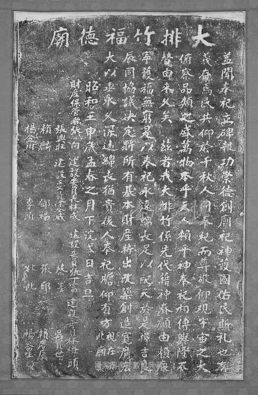 原碑無題,額刻「大排竹福德廟」六字