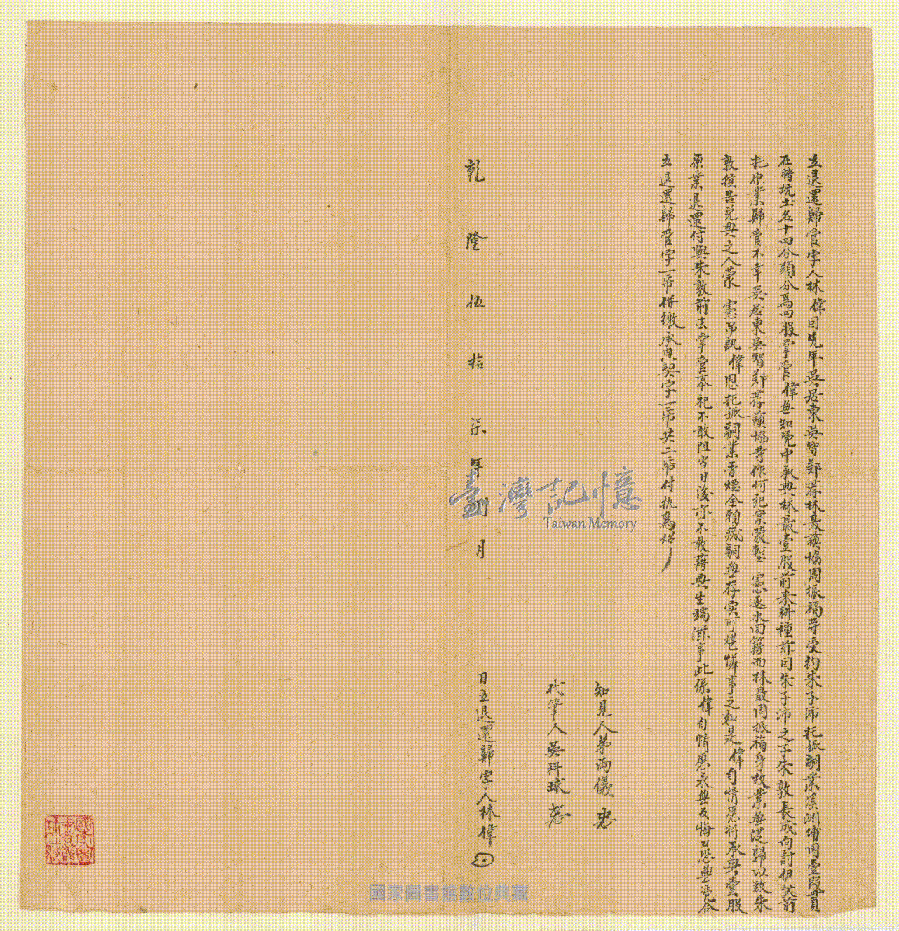 立契人、承受人、關係人:。 林偉、朱敦、知見人弟林兩儀,代筆人吳科球,吳居東、吳智、鄭荐、林最、蘇協、周振福,朱子沛。