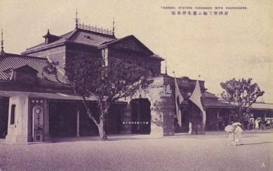 Taihoku Station Thronged with Passengers.