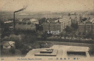 原為木造建築,1912年拆除改建,由近藤十郎設計,本張圖像即是完工後的臺北醫院,1938年4月,臺北醫院改制為臺北帝國大學附屬醫院,光復後為臺灣大學附屬醫院,即今常德街臺大醫院西址,為市定古蹟。