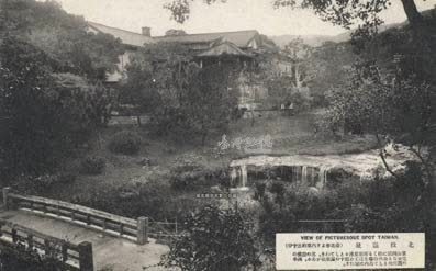 原說明:「為青翠群山所環繞,有靈泉沸湧,以設備完善的公共浴場為起點,有數十個溫泉旅館,若作為四季可觀光的景點,北投溫泉為島內之冠。」