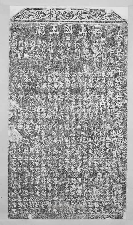 原碑無題,額刻花草紋飾與「三山國王廟」五字