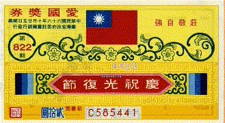 本期發行適逢光復節,獎券中間為一國旗,右方印有「莊敬自強」,下方印有「慶祝光復節」。
