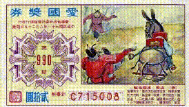 本期圖案為「唐 湛賷 連襟落驢」,故事內容大要:賷未第時,常受連襟彭伉所侮,幸其妻賢慧,慰勉力學,賷果一舉登第,時伉方郊遊,聞之失聲墜驢,鄉人譏之曰:「湛郎登第,彭郎墜驢」。並對湛妻稱讚不止。