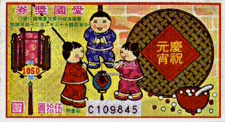 本期發行適逢元宵節,獎券圖案為提燈籠遊玩的兒童以及元宵,右方印有「慶祝元宵」。