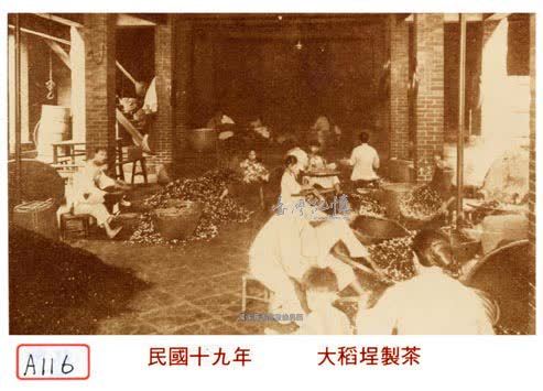 大稻埕又稱為稻江、稻埕。在日治時期,是臺灣人聚集之處,以茶市聞名,商業繁榮、文化薈萃。照片所見即為撿茶的情景。烘製好的茶葉在上市前需要再挑揀出多餘的枝梗,由照片可以看到,從事這項工作的多為婦女、兒童,也是昔日大稻埕亭仔腳下的特殊景觀。