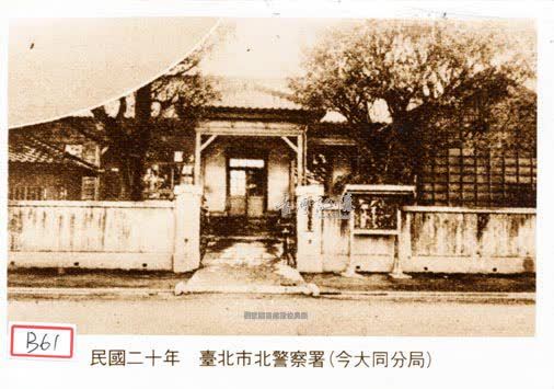 日治時期日本政府在臺北市設有兩個警察署,南警察署位於城中地區,北警察署位於城外大稻埕地區。照片所見為舊的北警察署建築,於1933年改建完成,新築位於現在的大同區寧夏路上,即今大同分局。(參考資料:臺北市文化局,http://www.culture.gov.tw/historic/detail09.asp?ID=85