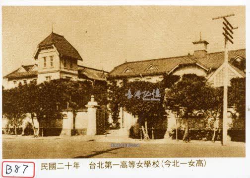 日治初期,總督府設立日語學校第三附屬學校,招生日本籍女學生,1907年(明治40年)改制為「臺灣總督府中學校附設高等女學校,兩年後獨立為臺灣總督府高等女學校,1917年(大正6年)改稱臺北高等女學校,1921年(大正10年)復改為臺北州立臺北高等女學校。其校址原為清代臺北城內的文廟,初期校舍為木造,校門設在東北角,臨公園路,即照片所見建築。今日主要校舍為1933年(昭和8年)改建,由臺北州土木課設計,校門改設西北角,臨重慶南路。