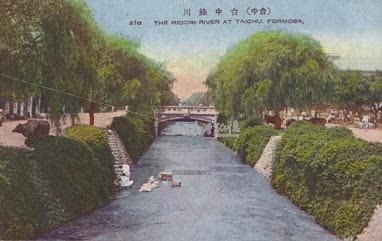 綠川原名「新盛溪」、「無名溪」,發源自臺中市北區,流經市中心,在今中興大學附近與旱溪匯流,日治時期加以整治,並於兩岸遍植綠樹。1912年(大正元年)至臺中參加臺中神社鎮座祭的佐久間左馬太總督(1844-1915)對其翠綠欲滴大加讚賞,因而命名為「綠川」,並沿用至今。由於臺中市實施「市區改正」(即都市計劃)後,市區井然有序、綠樹蒼鬱,而被日人視為「臺灣的京都」,流貫市區的綠川、柳川也因而被比擬為京都的加茂川(今名賀茂川,在京都府下鴨之南與高野川匯合後改名為鴨川。鴨川是日本京都極為有名的河川,也是京都市民休閒遊憩之所,至今依然。加茂川、賀茂川及鴨川,在日文發音中均同為kamogawa)。