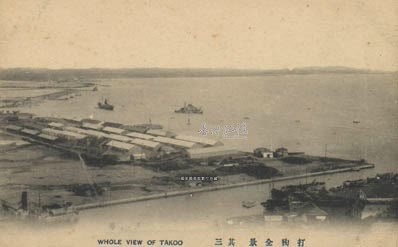 高雄港原名打狗港,清代時已是鳳山縣最大的漁商兩用港口。同治2年(1863)由於天津條約,打狗正式成為對外的通商口岸,並一躍成為本島主要的國際港。但光緒10年(1884)之後由於中法戰爭,清廷一面興築砲臺、一面將岩石沈於水道,使港口堵塞。日治時期日本政府重新經營打狗港,基於總督府土木局技師川上浩二郎的調查報告,於明治39年(1906)先進行港灣改良工程,第一期築港工程始於明治41年(1908)縱貫鐵路基隆至打狗通車之後,其後築港工程不斷修改擴大,使高雄港成為南部第一大港。而照片近處船渠即第一期築港工程建成的。