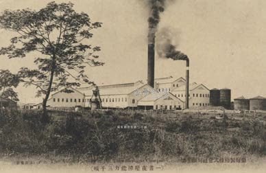 明信片上有說明文字「一晝夜可壓榨三千噸」。