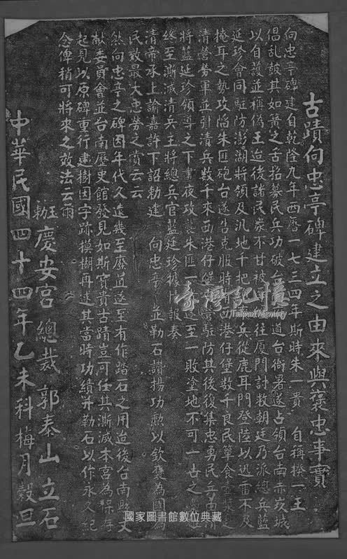 本批碑碣拓片由國立中央圖書館臺灣分館提供