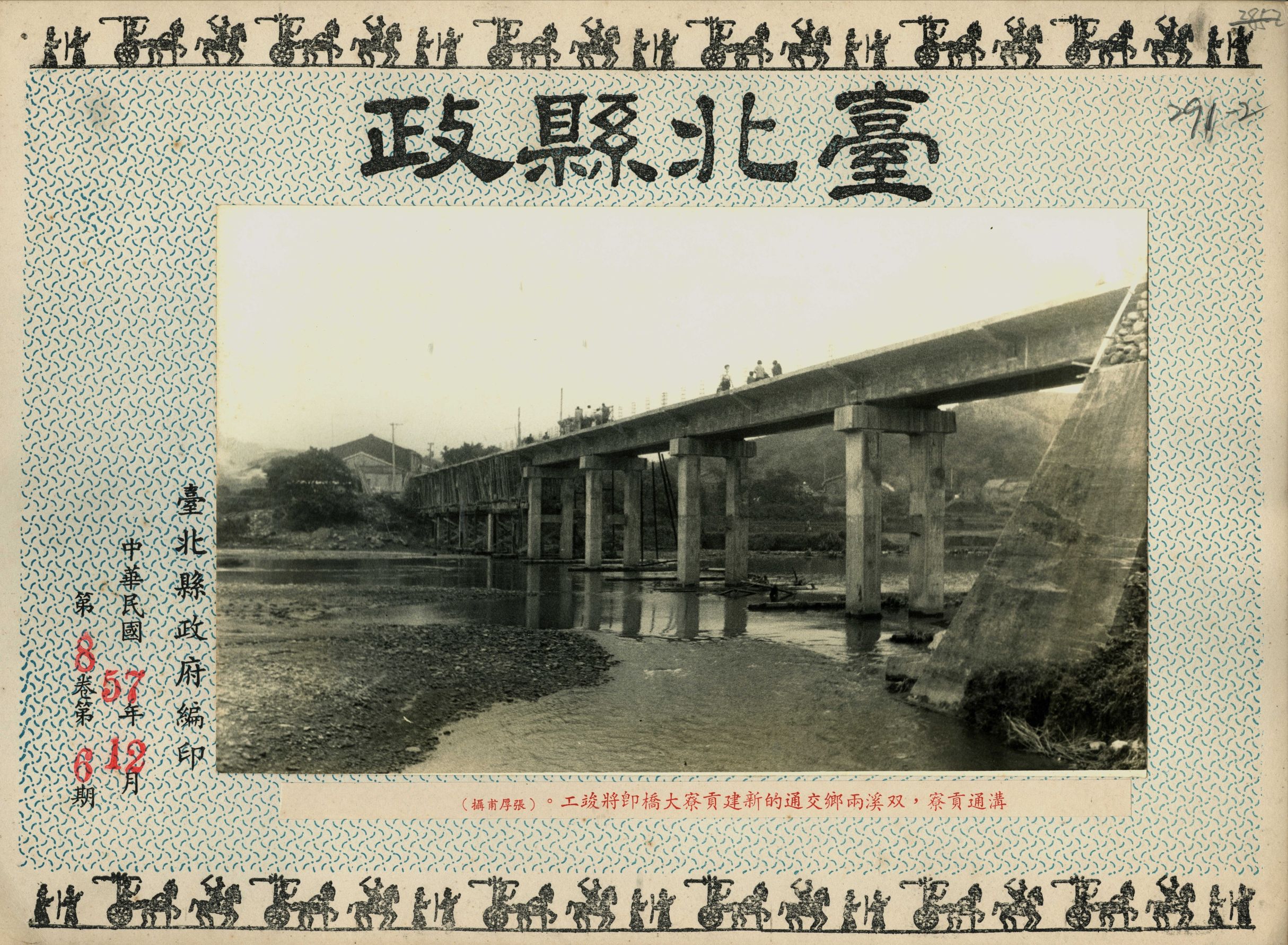 1968(民國57)年12月,臺北縣溝通貢寮、雙溪兩鄉交通的新建貢寮大橋即將竣工。行人三三兩兩漫步於橋上。